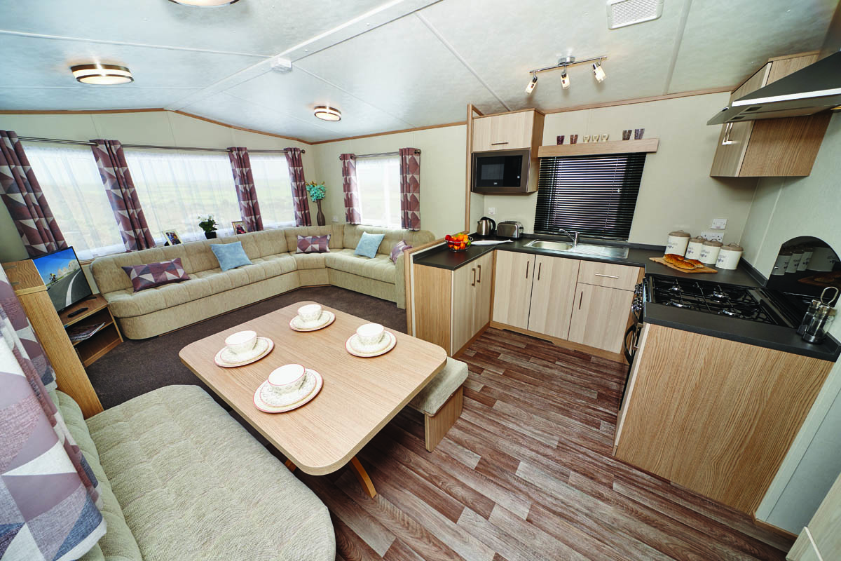 The Gold package holiday homes have everything you need for a great value holiday. Our holiday homes comfortably accommodate 6 people, with a master bedroom and two twin bedrooms. There is also a pull out sofa bed in the lounge. There are two bathrooms, one with a modern shower unit. The holiday homes feature a fully equipped kitchen with a gas oven, microwave, kettle and toaster. It has a full central heating system and double glazing throughout, with radiators in every room and an additional fireplace in the lounge. There is also parking next to your accommodation. All holiday homes include a gated sundeck and WiFi.